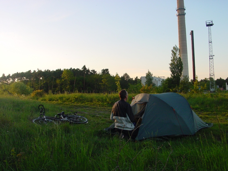 mit plattem Hinterrad haarscharf am Stadtrand |